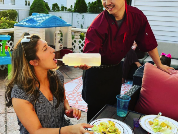 We bring our own hibachi grill and chef to your own backyard. All you need to do is set up tables and chairs, and provide plates and utensils for your party. Each person gets a side salad, hibachi vegetables, fried rice and 2 proteins of their choice.